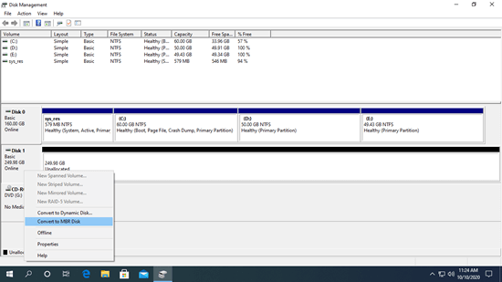 - Right click the front of disk and select "Convert to MBR Disk" or "Convert to GPT Disk".