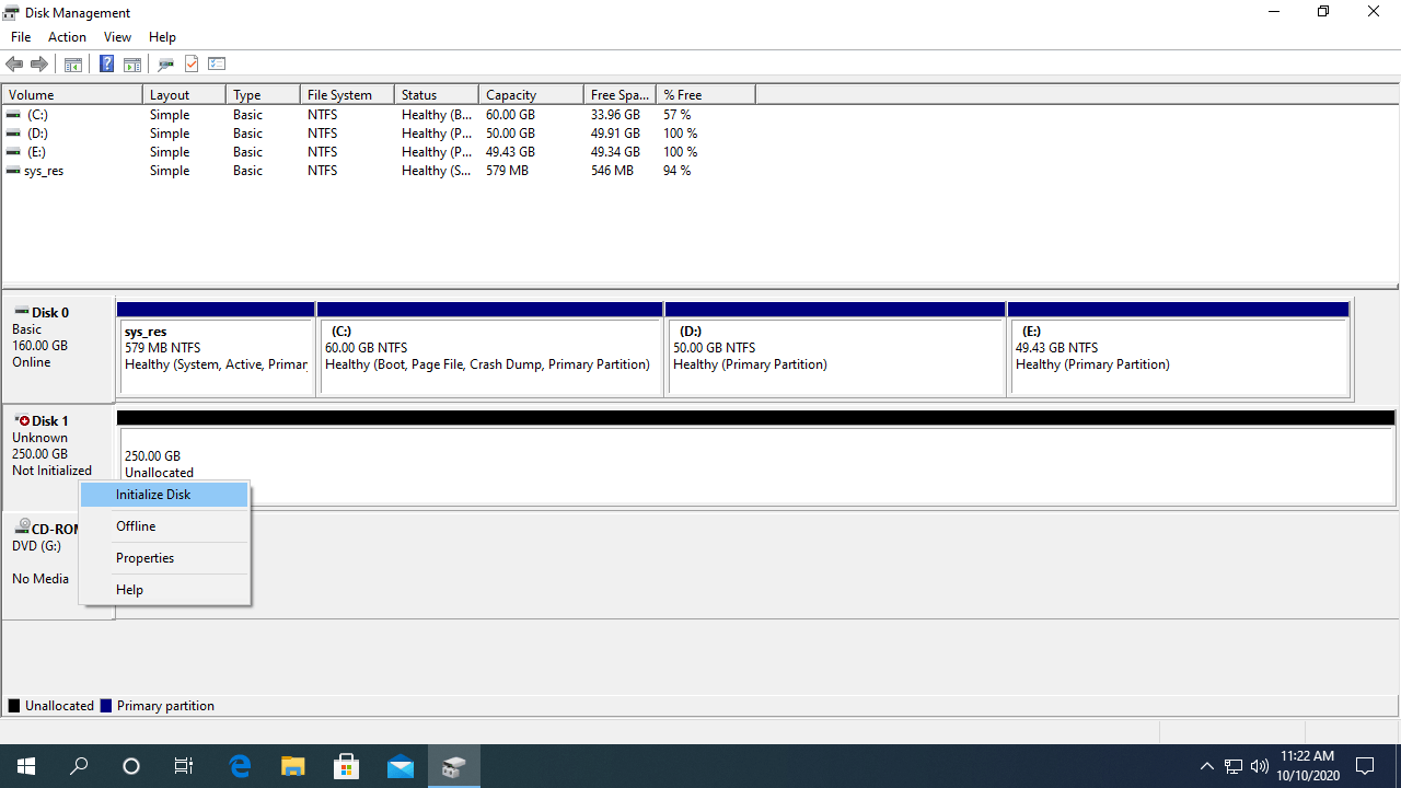 On a hard disk, there could be used space, free space and Unallocated space. Unlike used and free space in a drive, Unallocated space is not belong to any allocated partition. You can get Unallocated space by deleting or shrinking a partition. If you insert a brand new hard disk, all disk space is shown as Unallocated. First of all, you need to initialize this disk. On a hard disk, there could be one or more Unallocated space.