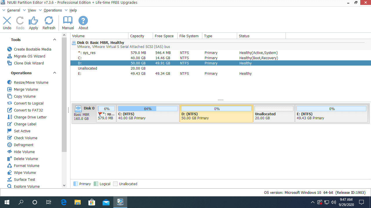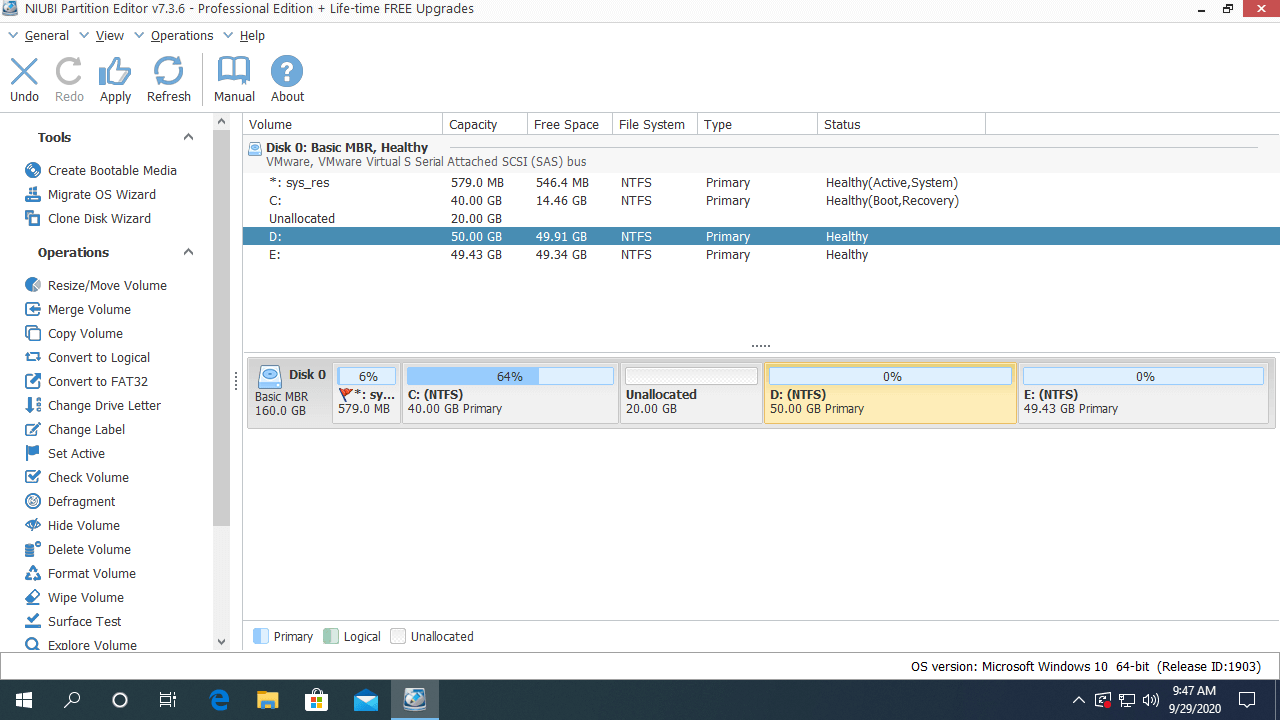 Note: NIUBI is designed to work in virtual mode to avoid mistake, you need to click Apply on top left to apply changes to real disk partition.