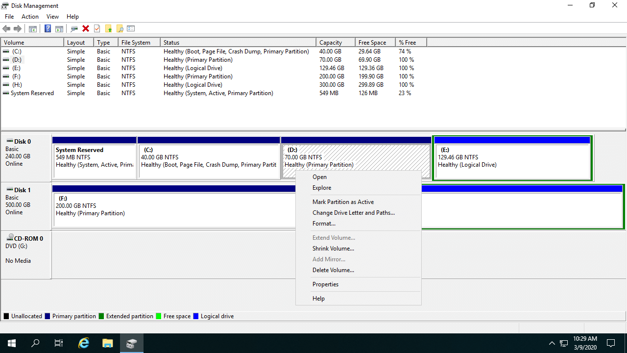 From Windows Server 2008, new "Shrink Volume" and "Extend Volume" functions are added. With the help of new functions, you can change partition size without losing data in most cases. However, both functions have restrictions. You can only shrink a NTFS partition to create new volume, or extend a NTFS partition by deleting the adjacent volume on the right. If you want to extend a partition by shrinking another one, Disk Management cannot help you.