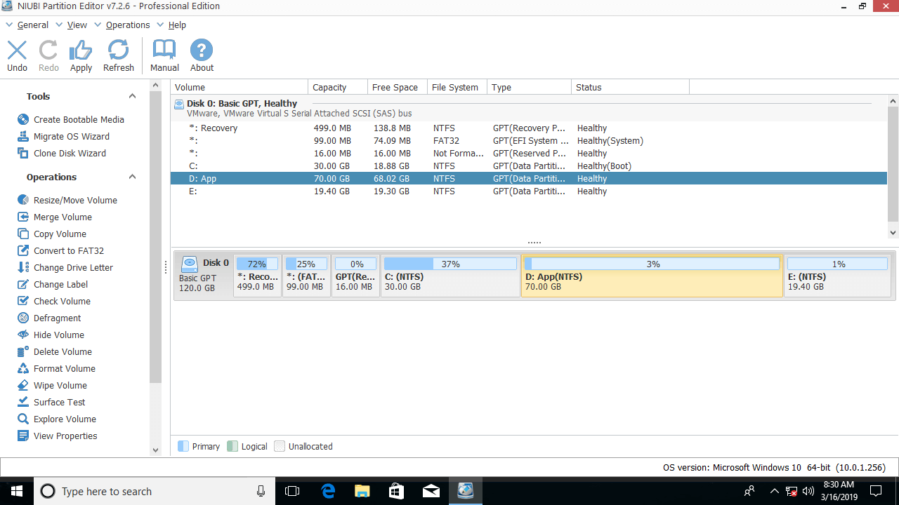 There are many disk partition software that can help resize partition, but you'd better back up and select reliable tool, because there is potential data loss and/or system damage risk. Here I recommend NIUBI Partition Editor.