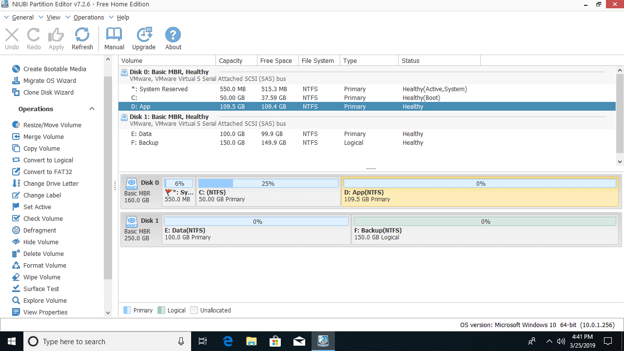 To do any operations, you just need to click, drag and drop on the disk map. If you do not understand how to operate, check the video guide. Comparing with inbuilt partition manager in Windows 10/11, NIUBI Partition Editor can do much more operations.