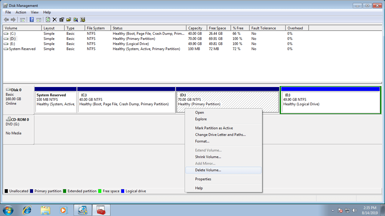 Merge partitions in Windows 7 without any software