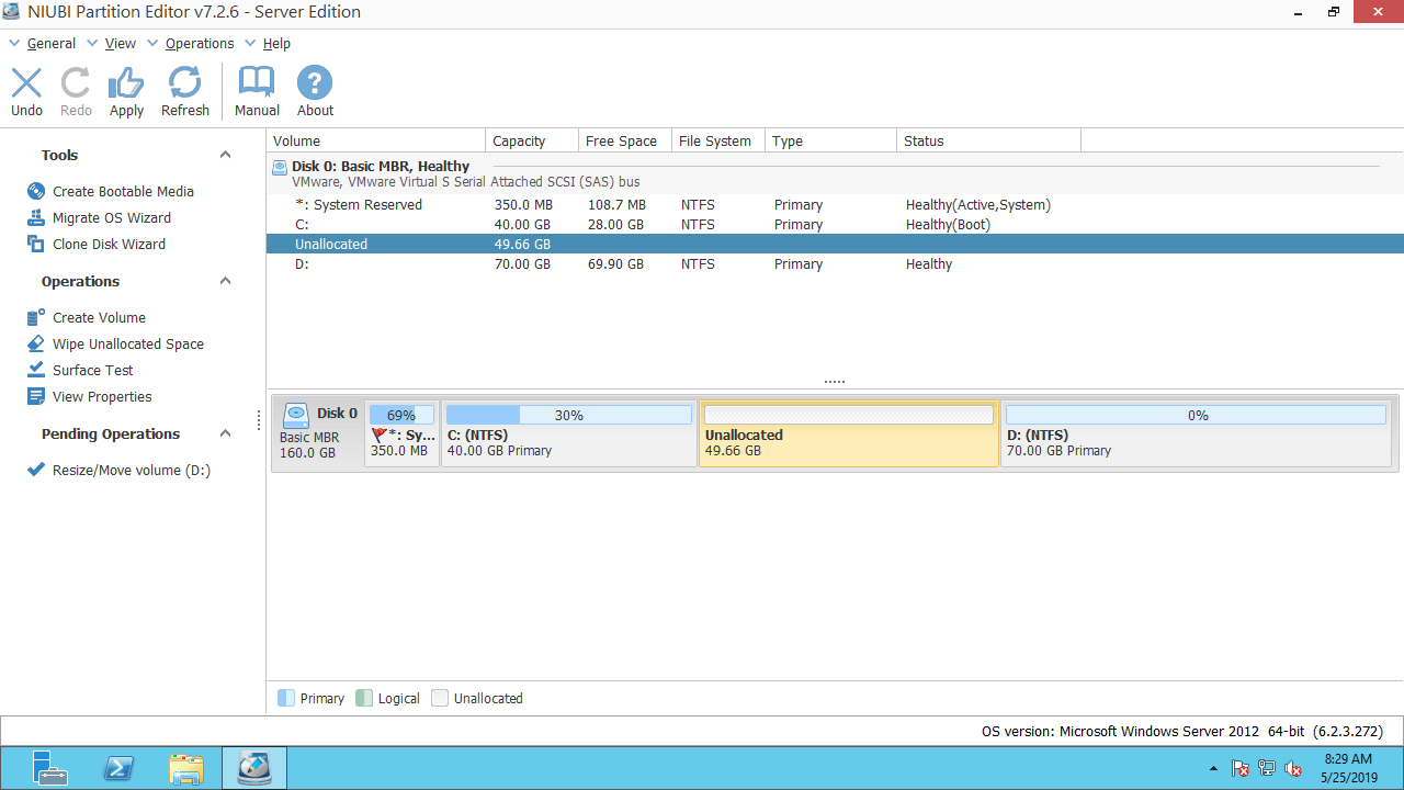 4. Resize Server 2012 partition instead of merging
